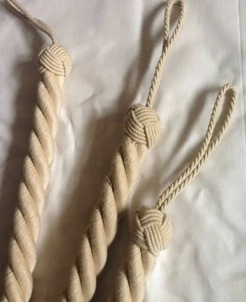 2 Kordeln für Vorhänge in der Farbe beige. Sehr guter Zustand. Durchmesser 27 mm, Länge 110 cm. Preis: 20,-- pro Stück oder 30,-- paarweise. Postsendung möglich, Porto zusätzlich.