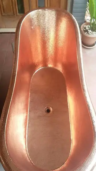 Diese Wanne wird von Hand aus Kupfer in Bali gefertigt
