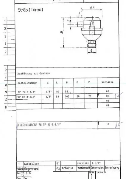 Filter, Luftfilter Sträb, Torna TF 87 (1360-TPH)