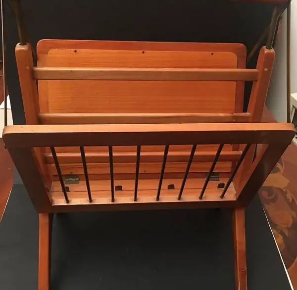 Questo portariviste disegnato da Cesare Lacca è realizzato in legno laccato, e prodotto a Milano negli anni '50.
