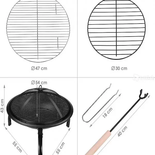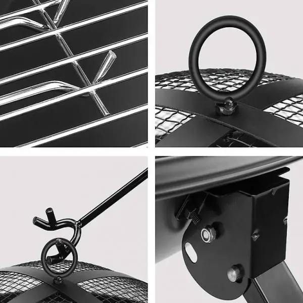 Komplettes Zubehör und hervorragende Qualität: Lieferumfang: 3 x abnehmbare Klappbeine, 1 x Feuerkorb, 2 x Gitter für Kohle und Grillgut, 1 x Haken mit Holzgriff, 2 x Verbrühschutzclip, 1 Schutzgitter. Das Produkt hat eine ausgezeichnete Verschleissfestigkeit, rostet nicht leicht, schrumpft nicht, verformt sich nicht, ist sicher zu verwenden.3 robuste Beine sorgen für solide Stabilität.