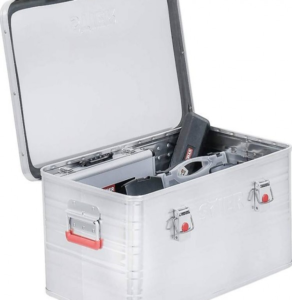 SICHERER EINSATZ: Stabile Hebelspannverschlüsse für wirksames Haften des Deckels; Begrenzungen im Deckelrahmen für einfaches Stapeln mehrere Aluboxern; Seitlich angebrachte Hebelgriffe für bequemen