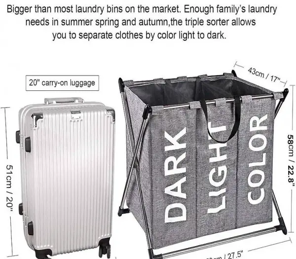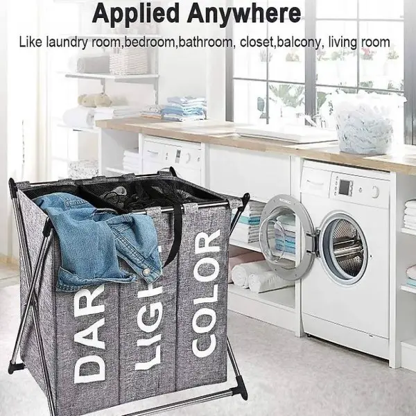 Waschküche wandert. Mit diesem Dreifach-Wäschekorb können Sie Kleidung nach Farbe Hell bis Dunkel trennen.