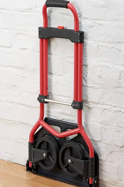 Sackkarre mit Klappfunktion für eine platzsparende Aufbewahrung nach der Benutzung | Räder klappen beim Einklappen der Ladefläche automatisch mit ein