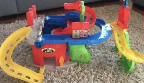 Bei der Little People Hochhausrennbahn steuert das Kind den Fahrspass selbst. Es kann die Wheelies-Fahrzeuge auf der horizontal ausgerichteten Bahn die Strassen entlang- und die Rampen hinunterflitzen lassen. Zum Auftanken wird unten an der Zapfsäule ein kurzer Stopp eingelegt. Ist die Rennbahn vertikal ausgerichtet, geht es erstmal über 90 cm nach oben. Dort kann das Kind seine Wheelies-Fahrzeuge aufstellen und über die Spiralrampen bis ganz nach unten sausen lassen. Mit Hilfe der Eltern lässt sich die Hochhausrennbahn beliebig in der gewünschten Ausrichtung aufbauen. So kann sich das Kind immer wieder neue Abenteuer ausdenken, egal ob es im Sitzen oder im Stehen spielen möchte.