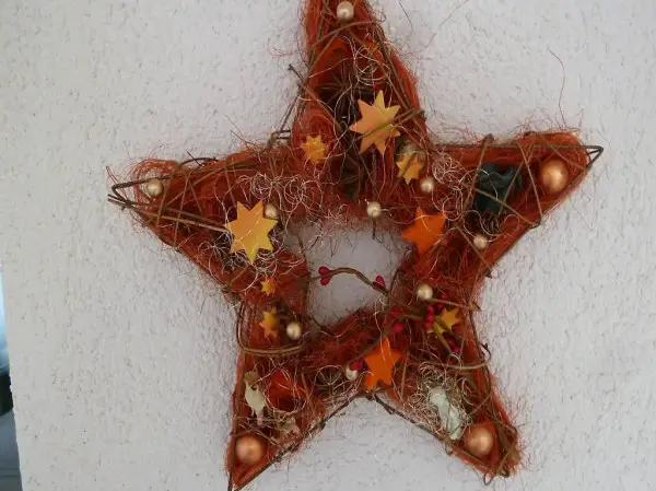 Die Sternbasis ist aus Draht & kann so jederzeit Neu umgestaltet werden! Der Stern ist sehr dekoratv mit einem Kerzli im Gläsli in der Mitte des Sterns auf einem