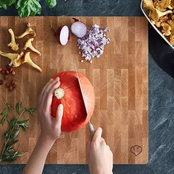 Holzbrett, Küchenbrett aus Stirnholz mit Griffmulde inkl. Pflegehinweis - 40x50 x 4 cm