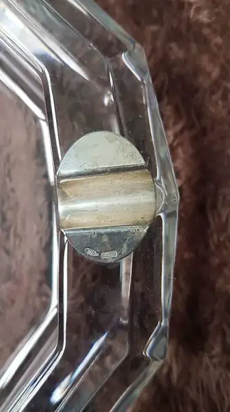 alter schwerer Glas Aschenbecher 20x20cm mit 800erSilber