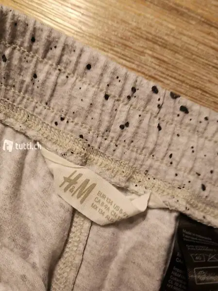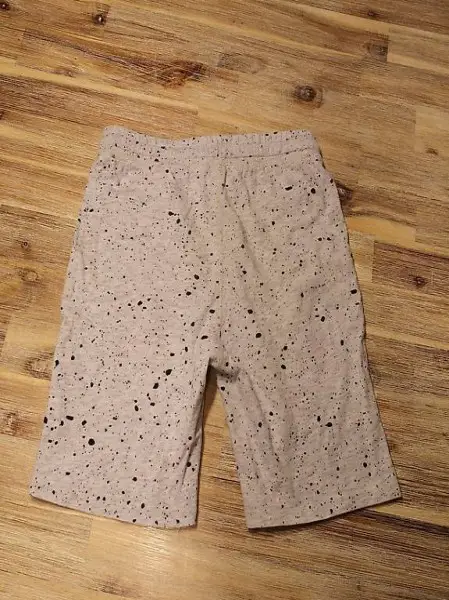 Leichte Baumwollshorts grau mit schwarzen Farbtupfen.