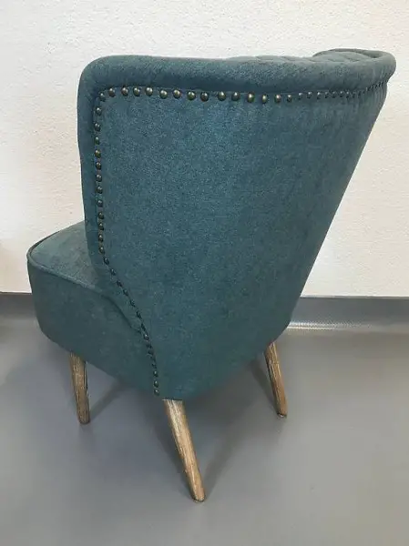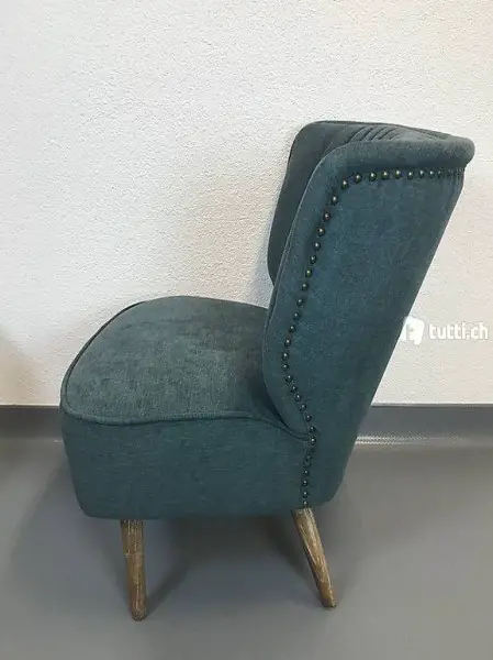 Sitz- und Rückfläche blau, die Rückenlehne mit aufwändigem Steppmuster.