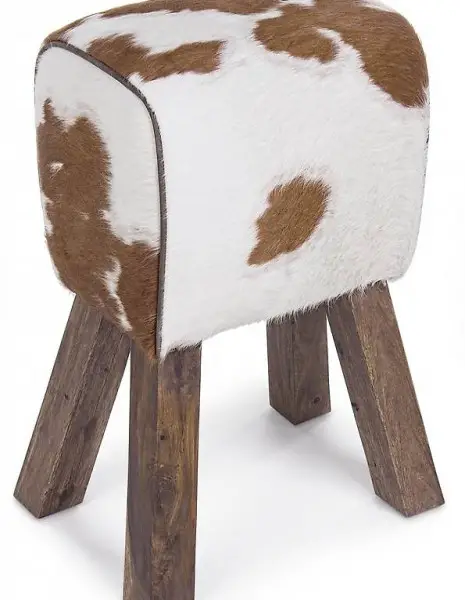 Hocker BUFFALO aus natürlichem Kuhfell und Beinen aus