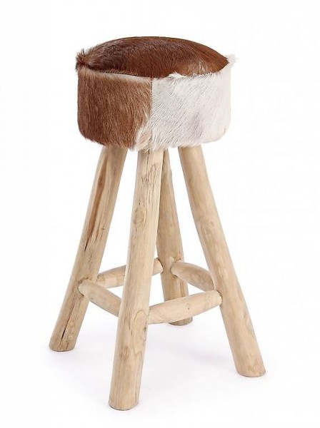 Hocker MALAK aus natürlichem Kuhfell und Beinen aus Ästen von