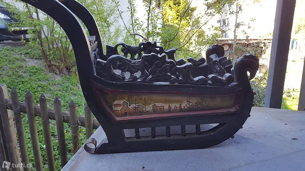 für Blumen oder Puppen aus Indonesien. leicht defekt. farbig bemalt. 75 cm lang 60 cm hoch 40 cm breit