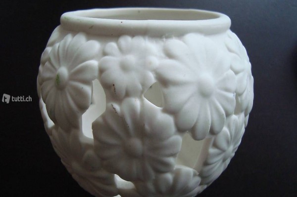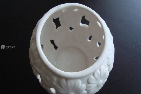 Keramik Teelicht-Halter / weiss mit Bumenstruktur