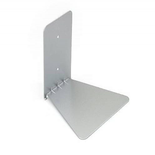 Powder coated steel floating book shelf becomes invisible behind stack of large books. Mounting hardware included.
