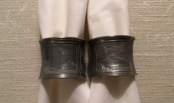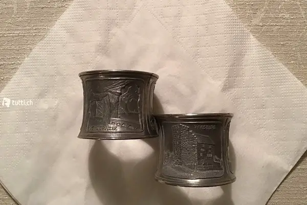 ... Habsburg und Silvrettagruppe. Höhe 3,5 cm, Durchmesser 5,5 cm. Siehe alle Fotos. Die edlen, alten Reifen dienten als Serviettenringe bei seltenen Gelegenheiten, sind wie neu und gelten als alte Rarität. Dürfte vom Alter her bereits eine