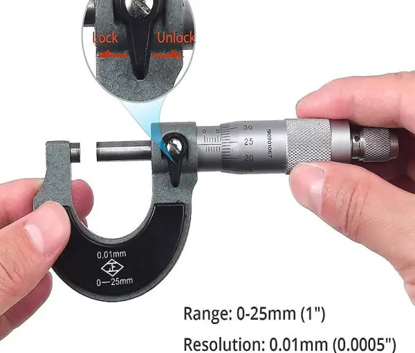 Messbereich: Der Mikrometerbereich sind bei 0-25 mm und verfügt über eine Verriegelung, um die Lesung zu lock. Die Auflösung beträgt 0.01mm. Genaue und klare Skala.