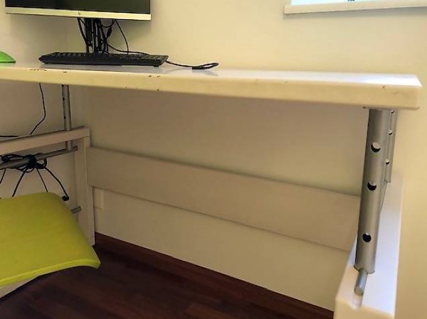 - Stabiler, manuell höhenverstellbarer Schreibtisch aus Massivholz (weiss/matt)