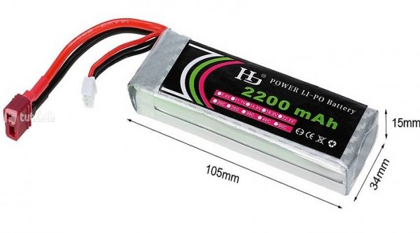 7.4V 2200mAh 25C LiPo Batterie 2S mit T Stecker