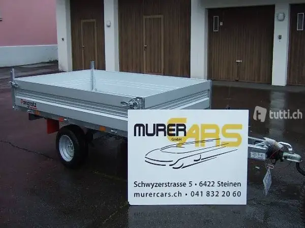 , ALU Bordwände, Stahlboden, Gesamtgewicht 1'500KG, Leergewicht 480KG, Nutzlast 1'020KG, Ladefläche: Länge 2'500mm Breite 1'530mm, 1-Achser, Bereifung 165R13, Multizweckanhänger