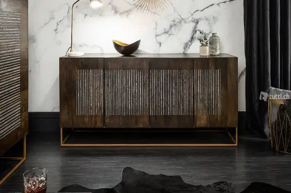 Ein Sideboard mit extravagantem Achat-Stein Besatz