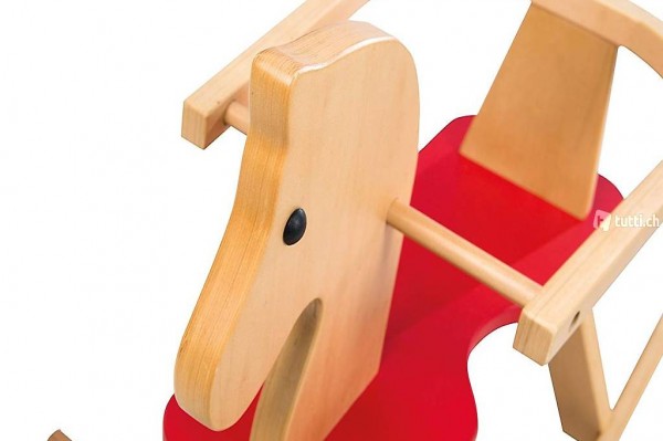Schaukelpferd, Schaukeltier Massivholz natur rot