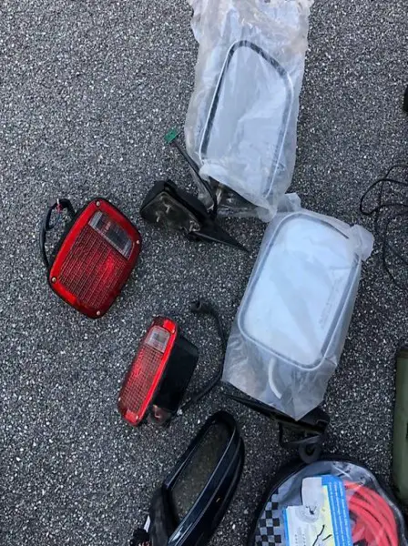 2XRückleuchte,2XAussenspiegel für US Track,Benzin Kaniste,Sclaffsack,2XKampping