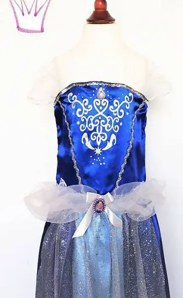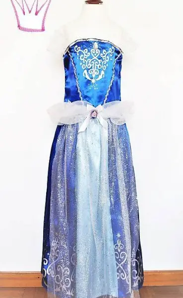 Ein wunderschönes, dunkelblau glänzendes Cinderella Kleid für Mädchen. Mit vielen silbern glänzenden Applikationen.