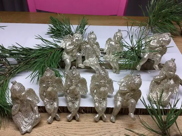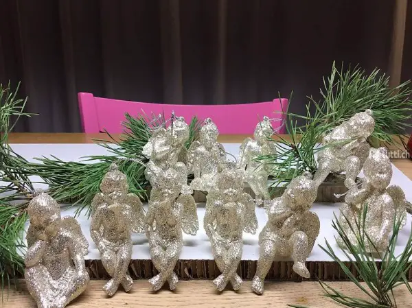 Zehn Engel,silbern schimmernd, z. Sitzen od.Hängen
