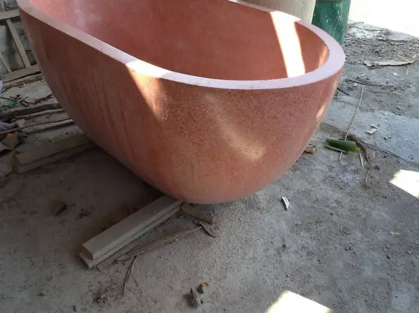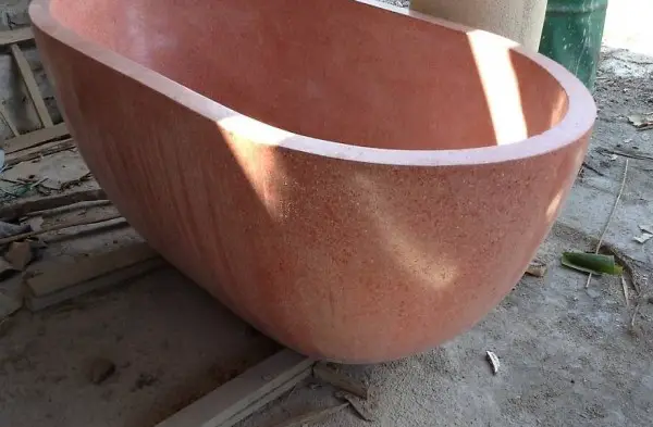 This tub is made by hand from terrazzo stone with cement in Bali,