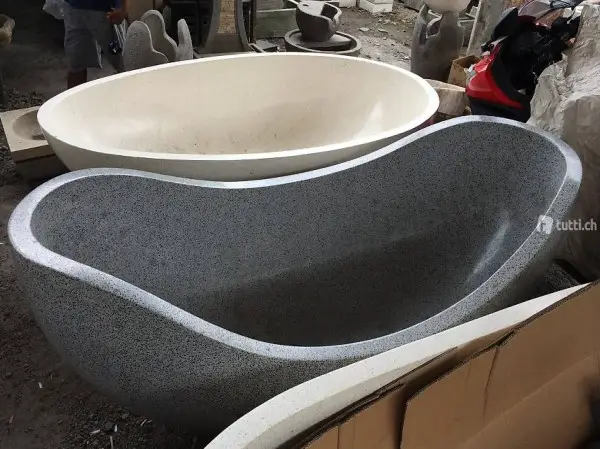 Diese Wanne wird von Hand aus Terrazzo Stein gefertigt in Bali
