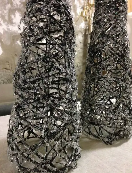 Tischdekorationen, 2 neue kegelförmige Weihnachtsbäume. Durchmesser: 13,5 cm, Höhe: 45 cm. Preis: 15,-- pro Stück oder 25,-- die zwei Weihnachtsbäume. Postsendung möglich, Porto zusätzlich.