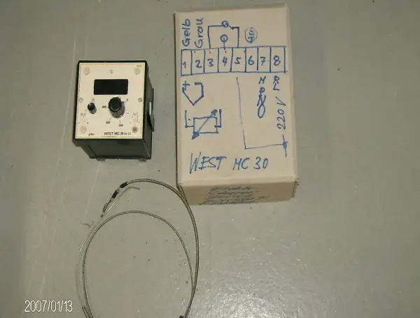 1 Temperatur Regelgerät WEST MC 30 gemäss Abbildungen ! inkl. Messfühler !! und deren Preis Abbildungen 1-2 // Weiteeres WSE Waldsee Elektronik mit 2 Fühler 400° C in Abbildungen 3-4 auf Anfrage ! Doc 2017 Weitere Artikel finden sie unter:: Alle Angebote.