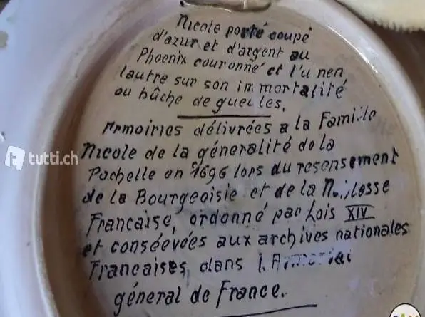 Porcelaine assiette généalogique famille "Nicole" Chenit