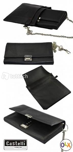 Kunstleder gefertigt. Die vielen Fächer und die Anhängekette mit Karabinerhaken machen die