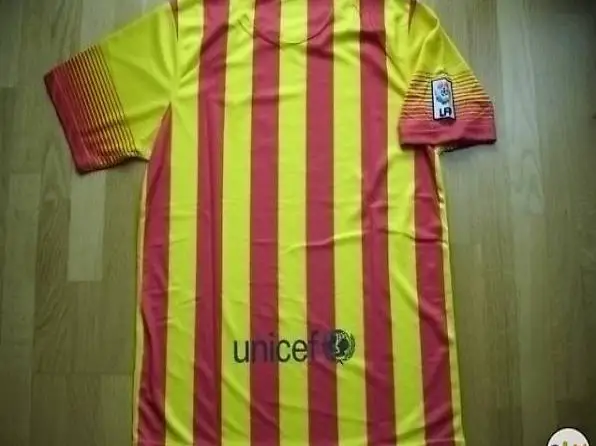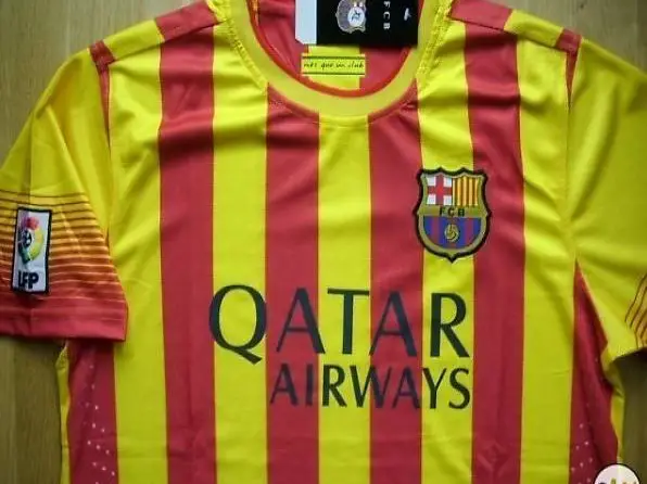 Fabrikneues "No Name" Auswärtstrikot inkl. Hosen vom FC Barcelona - FCB mit Trikotwerbung QATAR AIRWAYS auf der Brust und unicef auf dem Rücken.