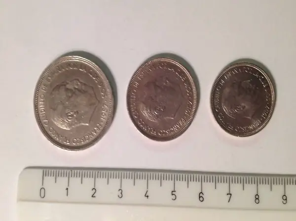 Dell'epoca di Francisco Franco Caudillo. 50,25 e 5 P.tas. In ottimo stato, in blocco Fr. 45.-