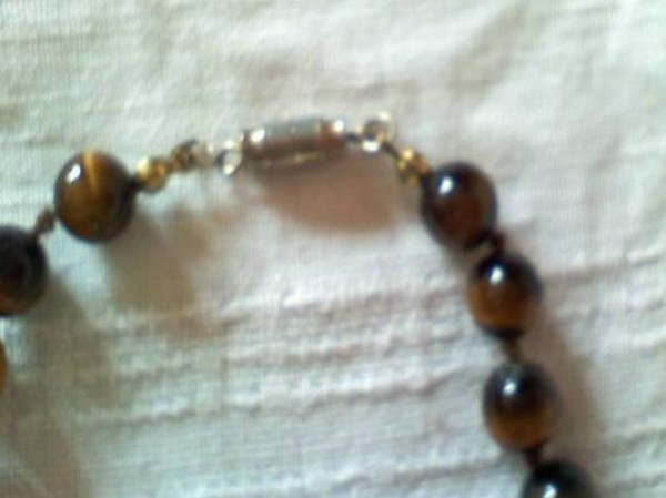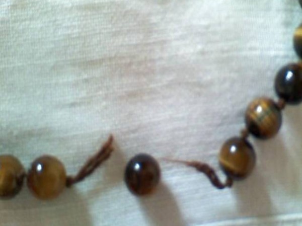 'Tigerauge', L ca 82cm, Schnur gerissen (muss neu aufgefädelt werden), Verschluss ok, guter Zustand