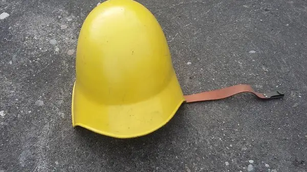 neuer, ungebrauchter alter Zivilschutz - Helm Gelb , aus Aluminium,