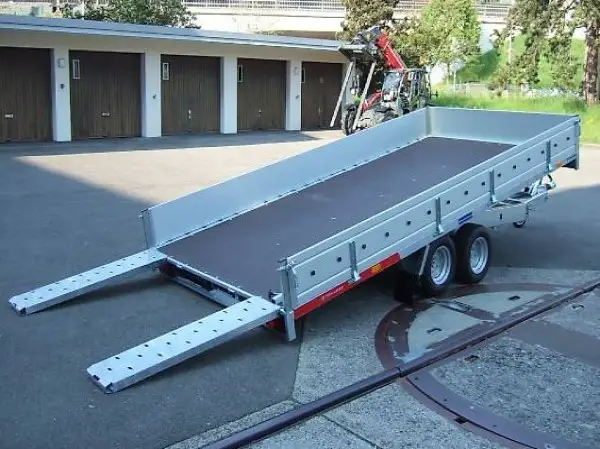Siebdruckplatte Holz, Auflaufbremsenund Achsen Alko oder Knott, Rampenschacht mit Rampen 1,4m, Multifunktionsleuchten im Heckträger geschützt montiert, Ohne Bordwände - 650.-Fr.