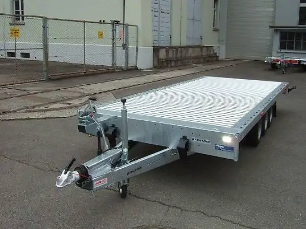 Gesamtgewicht 3'500KG, Leergewicht 900KG, Nutzlast 2'600KG, Ladefläche länge 514cm, Breite 216cm, 3-Achser, Bereifung 195/55 R10, Aluminiumboden, Auffahrampen, Anhängevorrichtung-Auflaufbremsen und Achsen ALKO oder KNOTT, Multifunktionsleuchten im Heckträger geschützt montiert, Auf Wunsch mit Bordwänden Aluminium + 650.-Fr. Radstange + 200.-Fr.