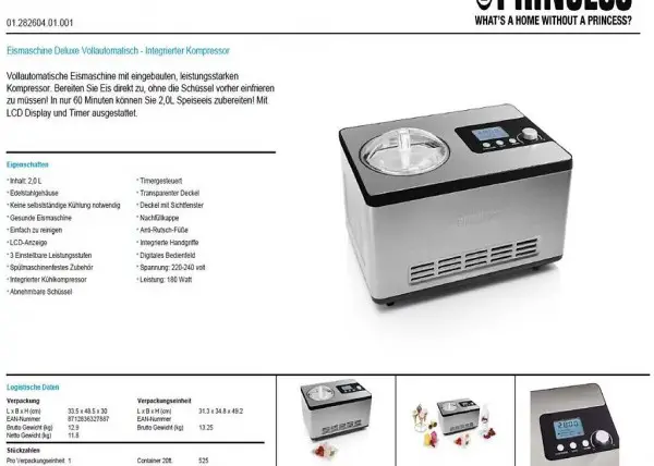 Kompressor. Bereiten Sie Eis direkt zu, ohne die Schüssel vorher einfrieren