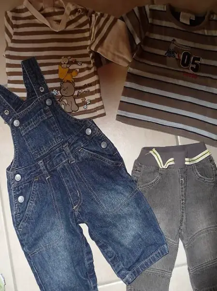 , 2 Hosen mit Pullis, 2 Bodys, alles guter Zustand