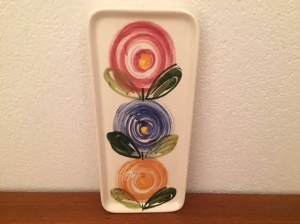 retro Schale / Kuchenschale aus Keramik im Design der Sechziger und Siebziger Jahre. Die Keramikschale ist vermutlich in Handarbeit entstanden, die gelungene leicht abstrahierte