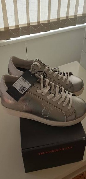 Coole, silberfarbene und ganz neue Trussardi Jeans Sneakers in den Grössen 42 und 44 gleich 2x.