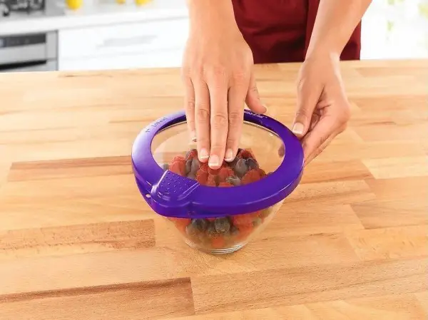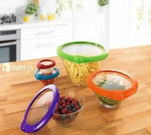 Vakuum Deckel für Schüsseln und Pfannen und andere Behälter. Immer die passende Grösse zu Hand. Schnell und effzient.Dauerhaft und wiedervendbar. Einfach im Gebrauch - Membrane eindrücken und fertig. Spühlmaschinenfest. Geeignet für