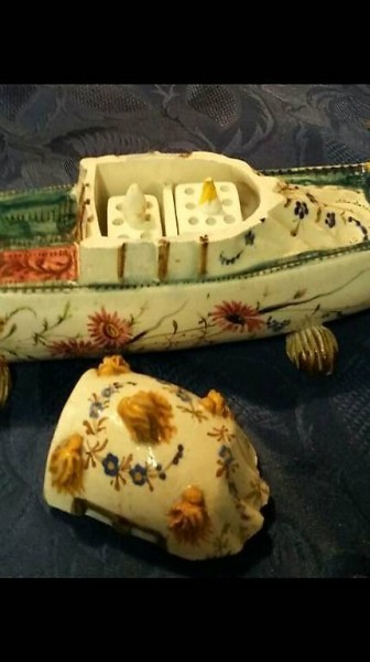 antikes 36cm lang und 10 cm hohes Tintenfass mit schöner Bemalung mit gold Filet mit herausnehmbaren Tintenfässli (
