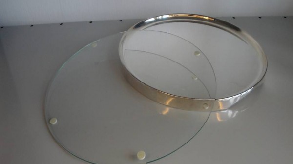 Käseplatte / Aufschnittplatte mit Glaseinsatz, versilbert