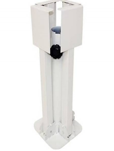 Aus pulverbeschichtetem Metall (weiss), mit Stellschraube zum Fixieren der Schirmstöcke. Geeignet für Schirmstöcke mit maximal 48cm Durchmesser, Reduzieradapter enthalten.