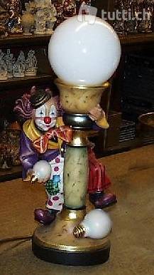 Clown mit Lampe Holzgeschnitzt Handbemalt